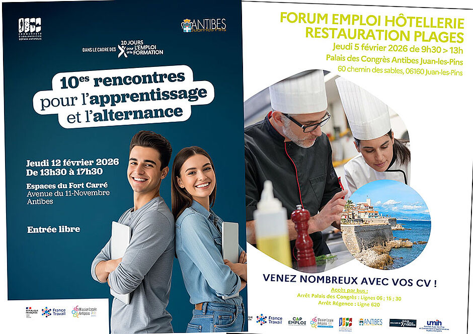 Du 3 au 13 février, se tiendront les "10 jours pour l’emploi et la formation" édition 2026, organisés par la ville d’Antibes Juan-les-Pins et la Communauté d'Agglomération de Sophia-Antipolis, en collaboration avec France Travail, la Mission Locale Antipolis et La Cité des Métiers.