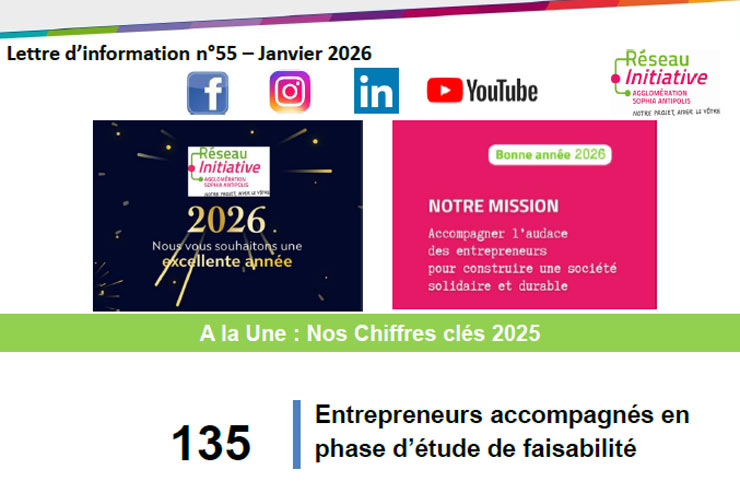 Initiative Agglomération Sophia Antipolis, outil d’accompagnement et de financement pour les créateurs et repreneurs d’entreprise du territoire de la Communauté d’Agglomération Sophia Antipolis a le plaisir de vous adresser sa lettre d’information de janvier 2026.