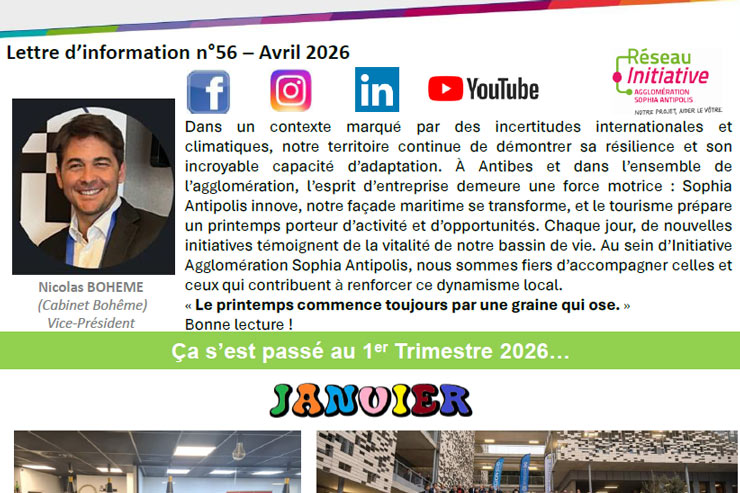 Dans un contexte marqué par des incertitudes internationales et climatiques, notre territoire continue de démontrer sa résilience et son incroyable capacité d’adaptation. À Antibes et dans l’ensemble de l’agglomération, l’esprit d’entreprise demeure une force motrice : Sophia Antipolis innove, notre façade maritime se transforme, et le tourisme prépare un printemps porteur d’activité et d’opportunités. Chaque jour, de nouvelles initiatives témoignent de la vitalité de notre bassin de vie. Au sein d’Initiative Agglomération Sophia Antipolis, nous sommes fiers d’accompagner celles et ceux qui contribuent à renforcer ce dynamisme local.