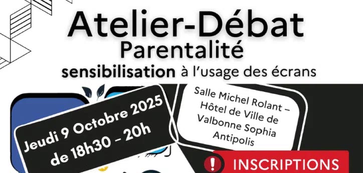 Sensibilisation à l’usage des écrans, jeudi 9 octobre de 18h30 à 20h, salle Michel Rolant, Hôtel de Ville.