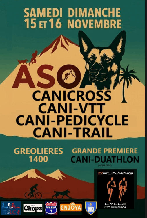 Du15nov.Au16nov.LieuGréolières les neiges 1400GréolièresSPORTCANICROSSAjouter à mon calendrierSélection de la vue© OpenStreetMap contributorsFermer13h30 - 16h00 Reconaissance du parcours14h00 - Briefing Canitrail14h30 - Départ Canitrail en Mass-start16h30 - Briefing16h30 - Départ Caniduathlon en Mass-start17h00 - Remise des prix Canitrail + CaniduathlonPrécédentRetour à la listeSuivant