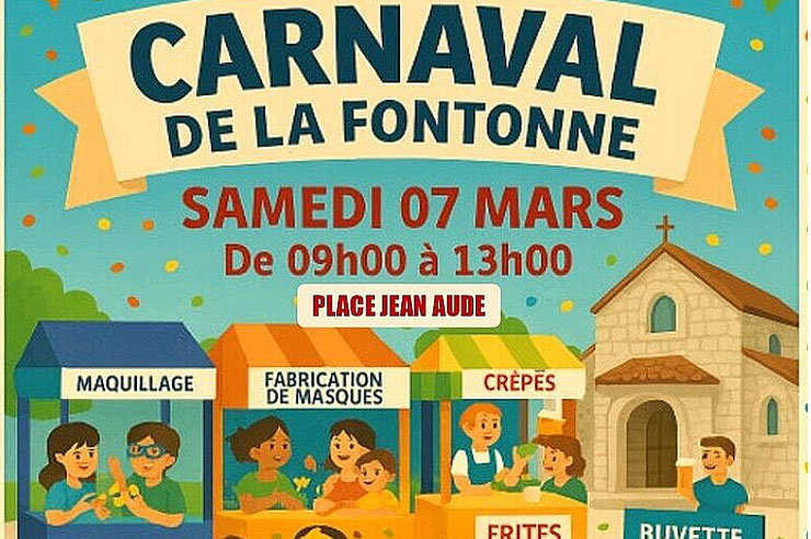 Samedi 07 mars, le Comité dees Fêtes de la Fontonne organise le Carnaval de la Fontonne. Spectacles de danses, animations et Stands de maquillage et de fabrication de masques.