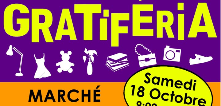 Une Gratiféria, c’est comme un vide-grenier, mais entièrement gratuit : apportez ce que vous voulez, ou rien ! Repartez avec ce que qui vous plaît (dans la limite de ce dont vous avez besoin)…