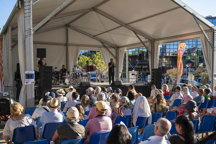 RDV tous les soirs à la Petite Pinède (boulevard Baudoin/ rue Leonetti) de 19h15 à 20h15, les 15 et 18 juillet de 11h à 12h à la Médiathèque Albert Camus, boulevard Chancel (suivi par une rencontre avec les musiciens), et les 10 et 21 juillet à 21h au plateau de la Garoupe