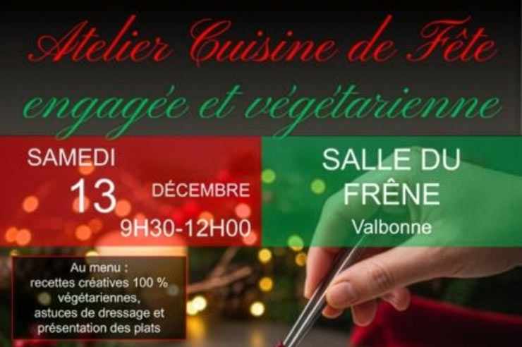 Venez découvrir une cuisine festive, savoureuse et responsable avec Cornelia cuisinière nomade et créative et Laura cuisinière de cœur de Boomerang Bio samedi 13 décembre de 9h30 à 12h, 3 rue du Frêne. Inscription sur hello asso.